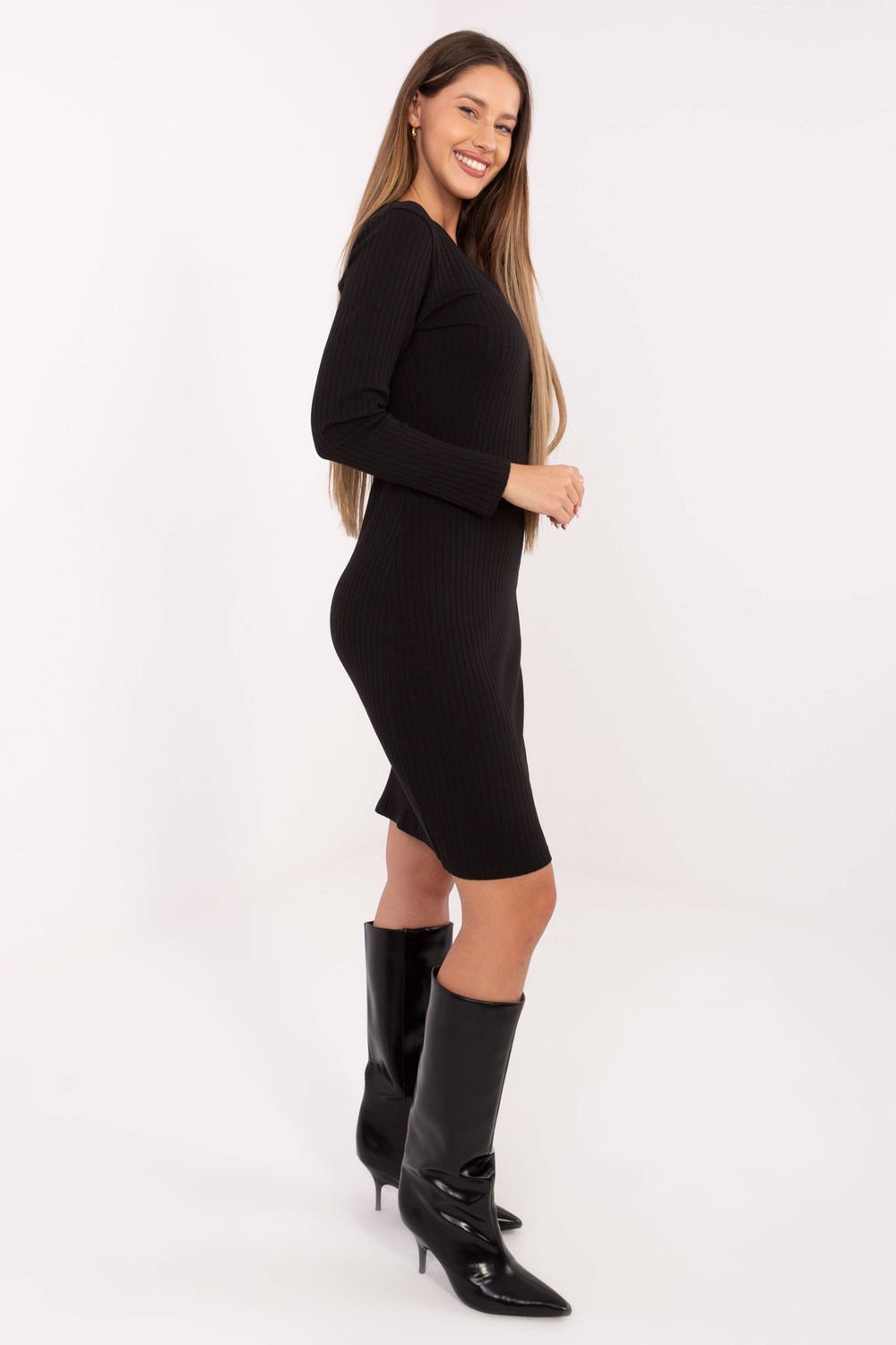 Cette robe crayon quotidienne allie confort et élégante simplicité, ce qui en fait un choix parfait aussi bien pour le travail que pour tous les jours. Fabriquée dans un doux coton côtelé avec une touche d’élasthanne, elle assure un confort de port et un ajustement parfait à la silhouette. Sa texture lisse lui donne un caractère universel, tandis que son décolleté en V souligne subtilement la ligne du cou. La robe arrive au-dessus du genou et possède des manches longues, ce qui en fait un excellent choix pour toutes les saisons. Ce modèle ne comporte pas de fermeture éclair, ce qui la rend facile à enfiler et confortable à porter. C’est une proposition élégante et pratique pour les tenues du quotidien.