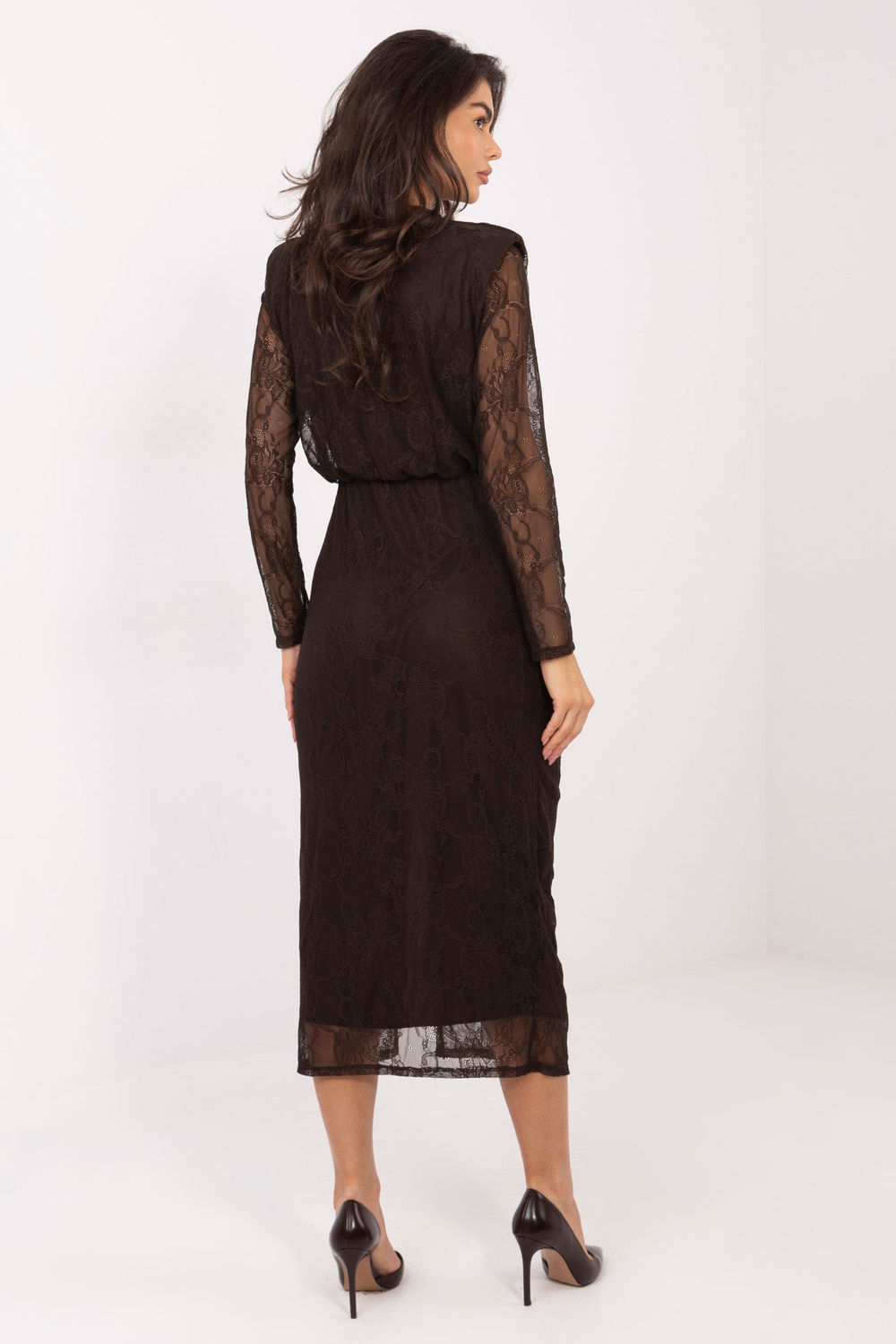 Une élégante robe en dentelle au caractère classique et féminin, parfaite pour les occasions spéciales. Le modèle en forme de robe crayon met magnifiquement en valeur la silhouette, tandis que la ceinture élastique assure un confort de port et un ajustement parfait. La robe est fabriquée à partir d’un mélange de viscose et d’élasthanne, garantissant douceur, flexibilité et confort toute la journée. La texture variée du tissu et la délicate dentelle ajoutent une élégance exceptionnelle et une touche de subtilité. La longueur midi combinée avec des manches longues donne au modèle un style incroyablement élégant et intemporel. Le décolleté fluide et élégant ajoute de la légèreté et du charme féminin, tandis que les plis sur le devant en bas avec une fente mettent en valeur la silhouette et offrent une liberté de mouvement. La robe n’a pas de fermeture éclair, elle est enfilée par la tête. Le modèle est doublé, à l’exception des manches, ce qui augmente le confort de port et l’esthétique de la finition. C’est un choix parfait pour les réceptions élégantes, les cérémonies et les rencontres officielles.