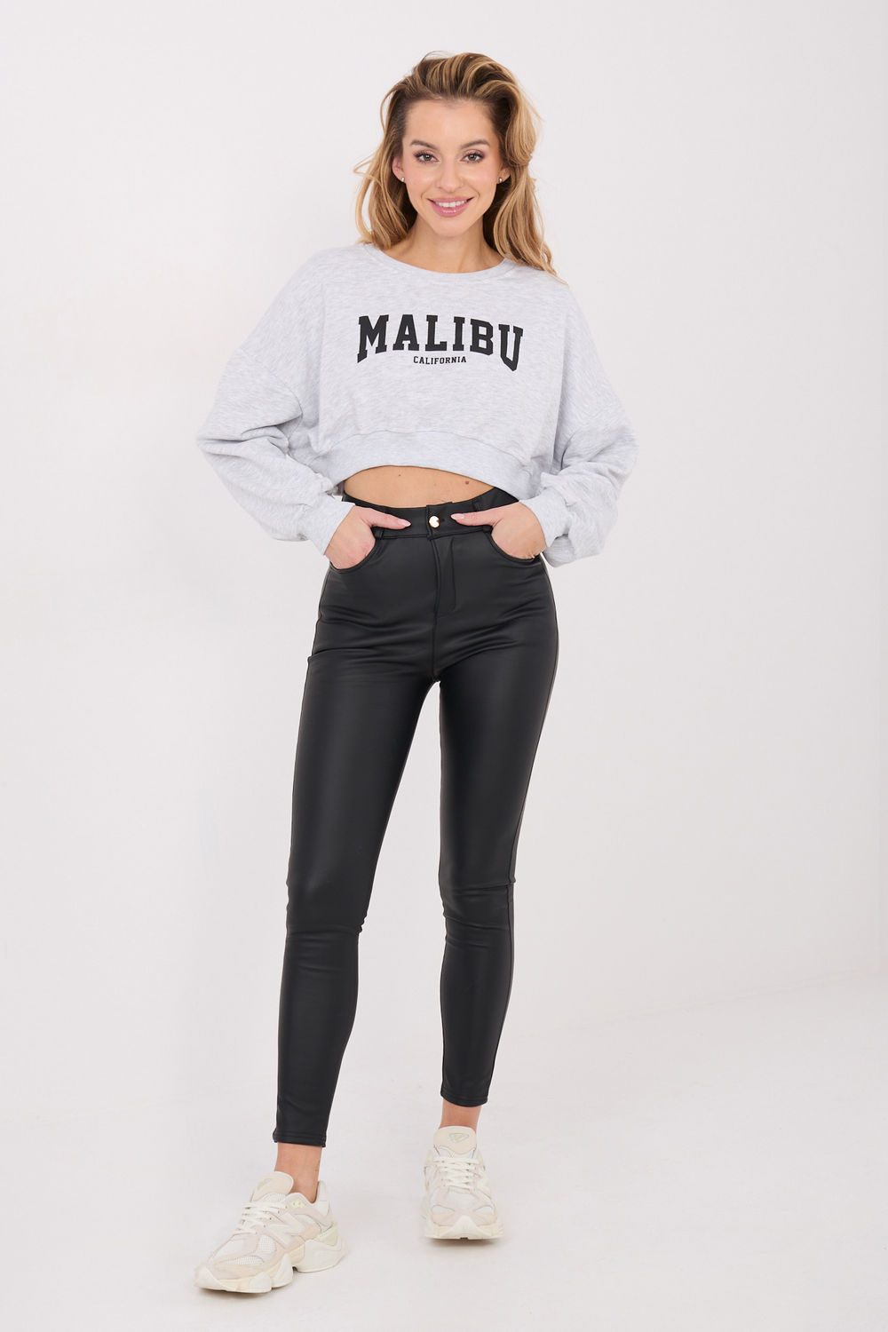 Le pull pour femme de style décontracté est un choix parfait pour les femmes qui apprécient le confort et un look tendance au quotidien. Sa coupe plus courte lui donne un caractère moderne et se marie parfaitement avec des pantalons et des jupes à taille haute. Ce modèle a des manches longues et un col rond classique, ce qui assure un confort de port et une polyvalence dans les tenues. L’absence de fermeture le rend pratique et facile à enfiler. À l’avant, il y a des inscriptions décoratives qui ajoutent une touche de mode audacieuse et soulignent le caractère décontracté du modèle. Le pull est fabriqué dans un mélange de coton et d’élasthanne de haute qualité, ce qui rend le tissu doux, élastique et agréable pour la peau. C’est une proposition idéale pour des tenues décontractées et stylées au quotidien, confortables, élégantes et intemporelles.