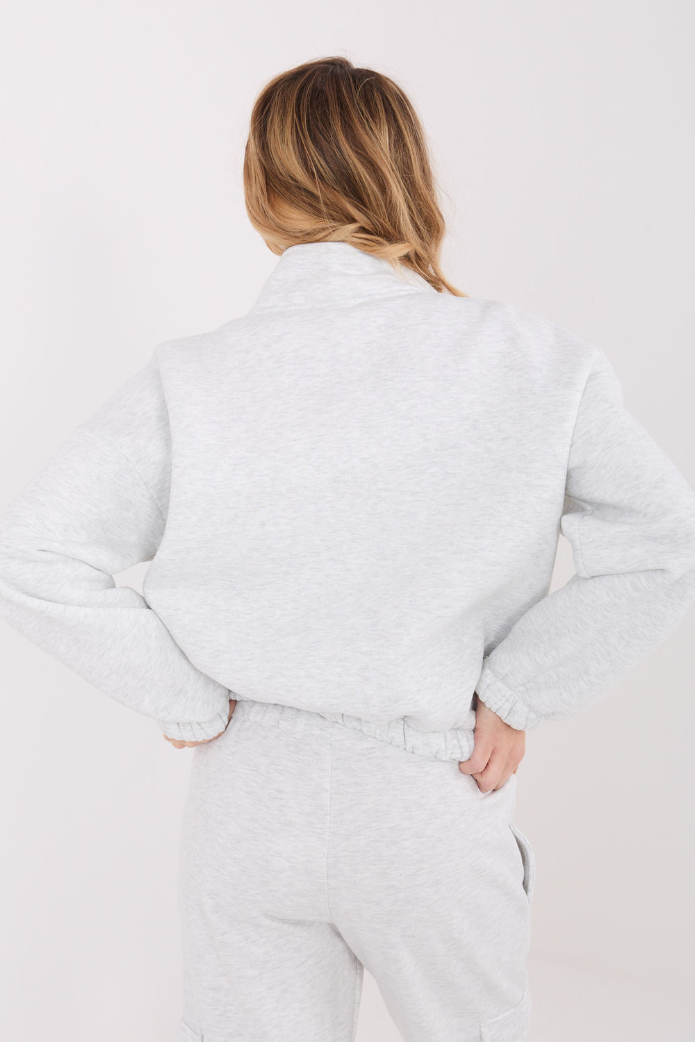 Le sweat-shirt classique pour femme dans un style décontracté est une proposition Taille unique pour tous les jours. Son motif lisse lui donne un caractère minimaliste, ce qui vous permet de l’adapter facilement à de nombreuses tenues, à la fois sportives et plus urbaines. Le modèle de longueur standard assure confort et liberté de mouvement. Les manches longues et le col pratique protègent efficacement du froid, tandis que la fermeture à glissière permet une mise en place rapide et un réglage en fonction des besoins. Le sweat-shirt est fabriqué dans un mélange de coton de haute qualité et d’élasthanne, garantissant douceur, élasticité et un bon ajustement à la silhouette. Le doublure intérieure supplémentaire assure que le modèle est parfait pour les jours plus frais, offrant confort et chaleur. C’est un élément pratique et intemporel de la garde-robe qui allie confort et style minimaliste à la mode.