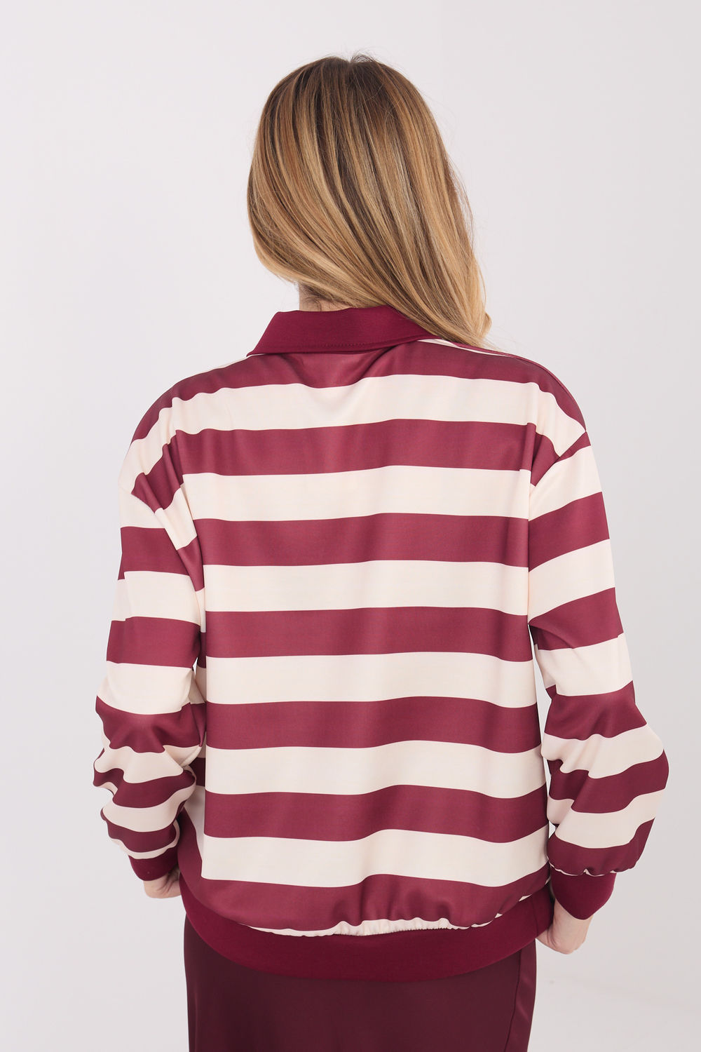 Un pull décontracté pour femme au style intemporel et universel, idéal pour les tenues de tous les jours. Ce modèle se distingue par un motif à rayures à la mode qui apporte fraîcheur et caractère légèrement sportif à l’ensemble. Le pull est fabriqué en viscose de haute qualité avec une touche d’élasthanne, ce qui garantit douceur, élasticité et grand confort lors du port. La coupe de longueur standard avec des manches longues s’ajuste bien à la silhouette et conviendra pour toute la saison. La fermeture à boutons sur le devant de type polo associée à un col classique donne au pull un look élégant et décontracté à la fois. C’est une excellente proposition pour les femmes qui apprécient le confort associé à des détails soignés. Ce pull se marie parfaitement avec un jean, un pantalon en tissu ou une jupe, créant des tenues élégantes au quotidien.