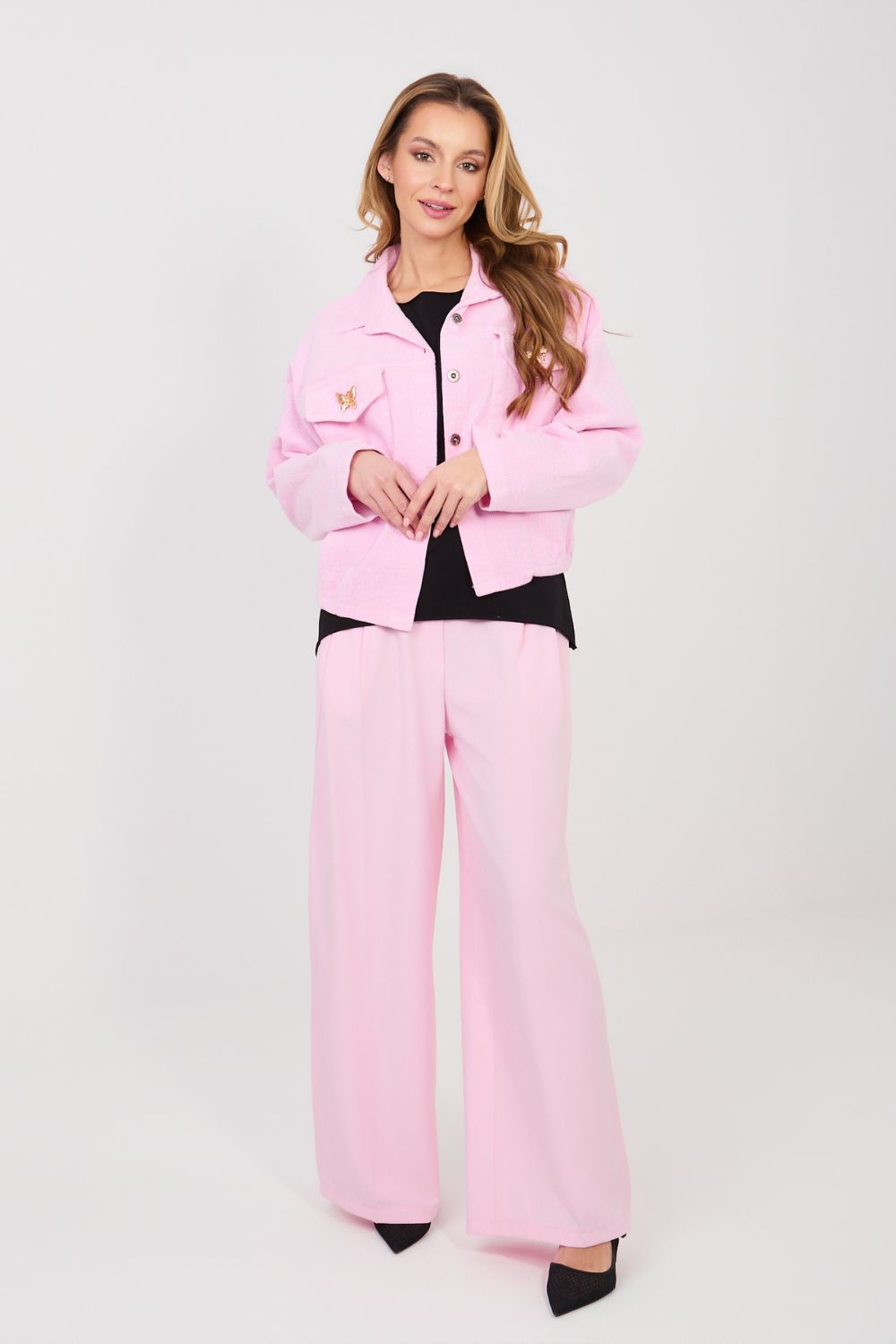 Veste moderne en velours côtelé pour femme dans un style décontracté, idéale pour les jours quotidiens et de transition. Ce modèle associe la coupe classique du bomber à une finition légèrement rétro et tendance, créant une proposition polyvalente pour de nombreuses tenues. La veste est fabriquée en coton de haute qualité avec une touche d’élasthanne, ce qui assure un confort de port et une légère élasticité du matériau. Elle présente un motif lisse, une coupe courte et des manches longues qui apportent légèreté et un caractère moderne. Les poches pratiques à rabat à l’avant permettent de ranger confortablement de petits objets, et la fermeture à boutons ainsi que l’élastique inséré en bas assurent un ajustement et un confort de port. Un autre atout sont les broches décoratives amovibles, qui permettent de personnaliser l’apparence de la veste. Le modèle est fini avec un col classique, soulignant le caractère élégant du bomber, tout en conservant un style décontracté et décontracté. C’est le choix idéal pour les femmes à la recherche d’une veste pratique et élégante pour le printemps ou l’automne.