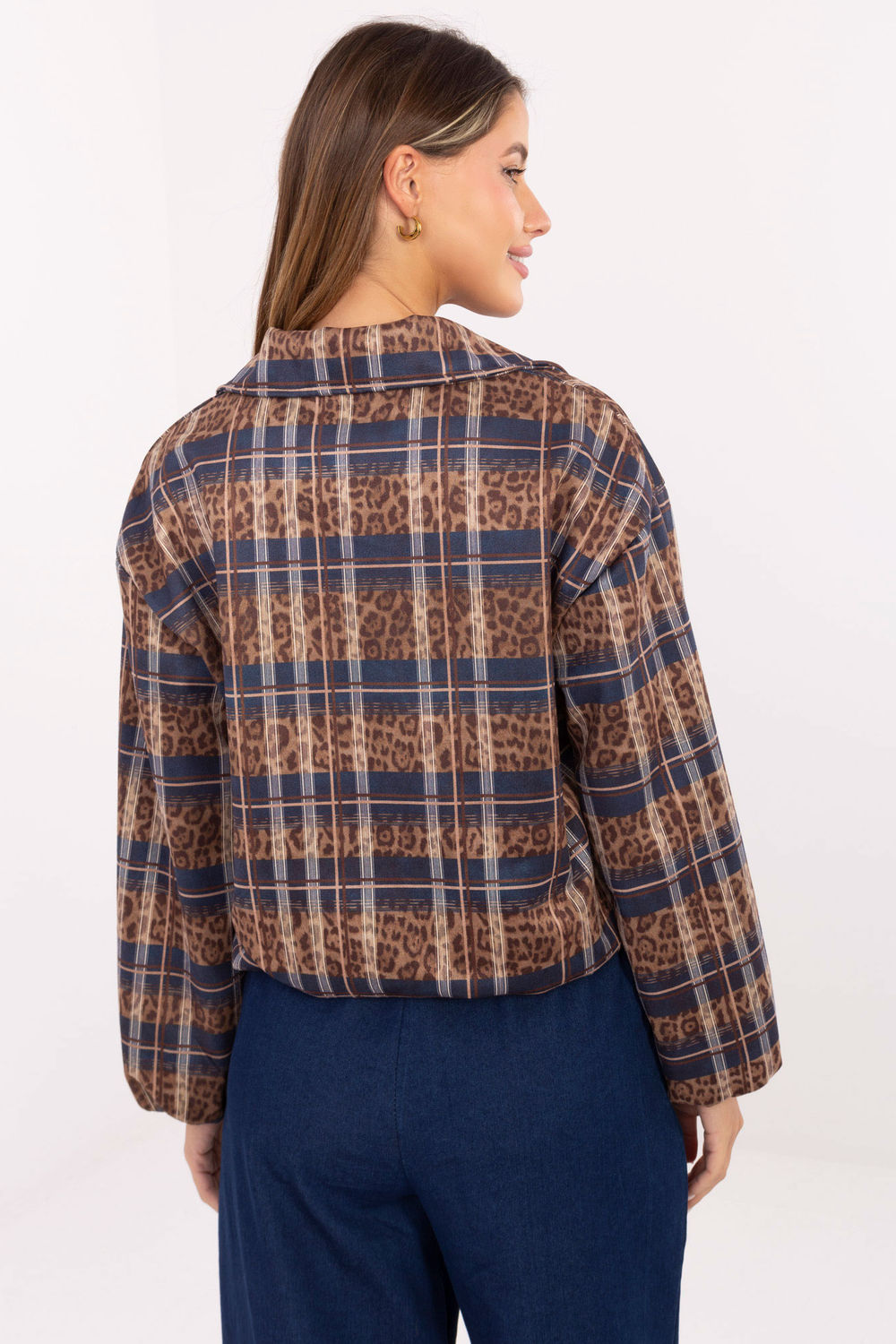 Une veste élégante pour femme au caractère décontracté, associant deux motifs à la mode : l’imprimé animal et le motif à carreaux. Fabriquée dans un mélange de polyester et d’élasthanne de haute qualité, elle assure un confort, une élasticité et une durabilité. Ce modèle de longueur standard est doté de manches longues, d’un col et d’une fermeture éclair, lui donnant un look classique et moderne à la fois. La doublure garantit le confort et une finition esthétique. C’est une excellente proposition pour un style décontracté au quotidien, idéale avec des jeans, des pantalons ou des jupes, adaptée à de nombreuses tenues urbaines tout au long de la saison.
