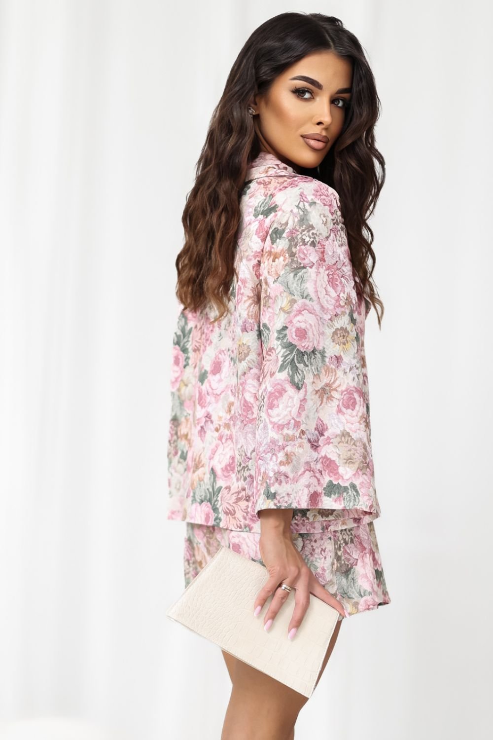Une élégante veste de femme avec une impression florale exceptionnelle, qui combine parfaitement la classique avec le style moderne. Parfait pour différentes occasions, il conviendra aussi bien au travail, lors de réunions d’affaires que pour les fêtes, ajoutant un caractère féminin à la tenue. La coupe met joliment en valeur la silhouette, et la fermeture à deux boutons apporte une élégance intemporelle à l’ensemble. Les larges manches 3/4 apportent légèreté et une touche de mode subtile. Le modèle fabriqué dans un mélange de polyester et d’élasthanne de haute qualité assure confort et un bon ajustement à la silhouette. La veste a une doublure, ce qui augmente le confort d’utilisation et lui permet de bien se mouler sur le corps.